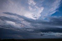 The day after the extraodinary Canadian, Texas tornado of 27 May 2015. I just nabbed a faint lightning bolt behind this rapidly rotating wall cloud near Lydia, Kansas. This storm produced two tornadoes though we only saw one at a distance. All chase pics here